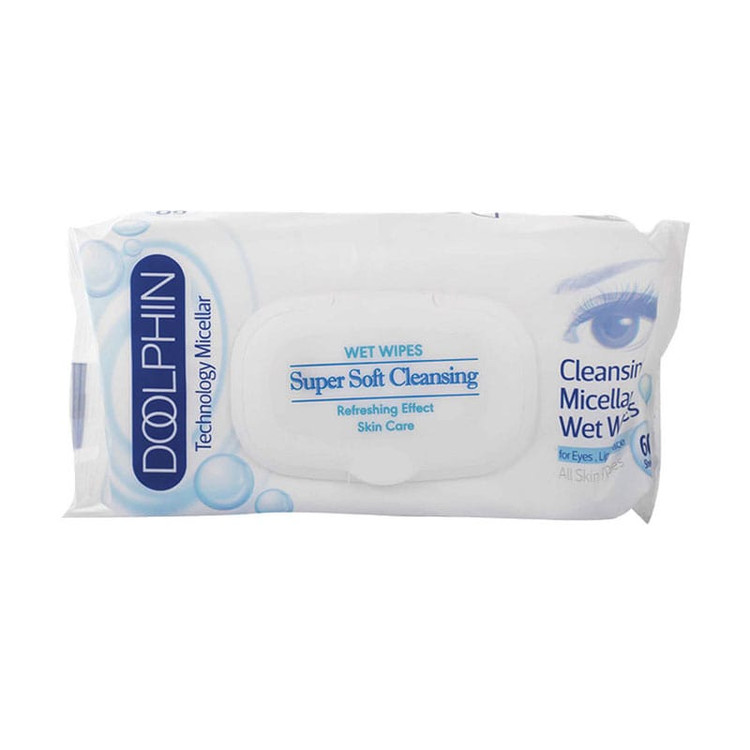 دستمال مرطوب پاک کننده آرایش دلفین(60 عددی)